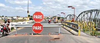 Iguatu (Sucursal) – A ponte rodoviária Demócrito Rocha, sobre o Rio Jaguaribe, um dos principais acessos a esta cidade, está interditada, por tempo indeterminado, para o trânsito de veículos. O bloqueio foi feito pelo Departamento de Edificações, Rodovias e Transporte (Dert), na tarde de sexta-feira passada, após a constatação de que o vão central sofreu um deslocamento lateral, que pode ter danificado os apoios dos pilares. A interdição tem por objetivo manter a segurança dos usuários e evitar maior danos a obra.