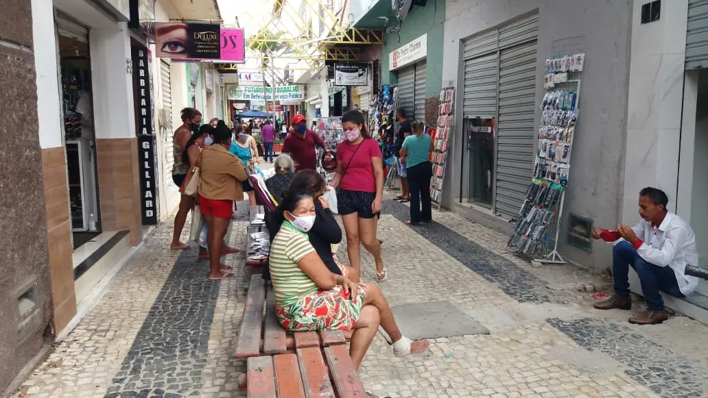 Primeiro dia de reabertura gradual do comércio gera aglomerações no Centro de Iguatu