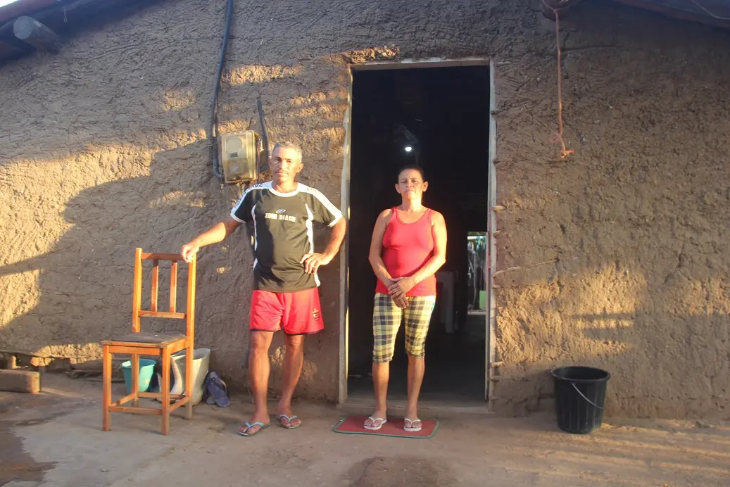 Na localidade de Quixoá dos Dinos, encontramos o casal Laura Alves e José Alves de Souza, que há mais de 30 anos mora em uma casa de taipa construída em 1991. “As varas tirei aqui na mata, perto”. Em dezembro passado, a família conseguiu fazer um piso cimentado. “Antes era de terra, a gente varria, molhava, mas tinha buraco e poeira”, lembra Laura Alves. Os dois também nasceram e cresceram em casas de pau a pique.