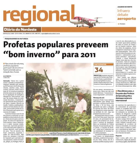 Ciência e sabedoria popular. Todo início de ano, com a proximidade da quadra chuvosa no Ceará (fevereiro a maio) meteorologistas analisam diversos fatores e fenômenos naturais e, a partir desses estudos pragmáticos e sistemáticos, apontam o prognóstico para as chuvas no Estado, período este em que o sertanejo popularmente chama de inverno.