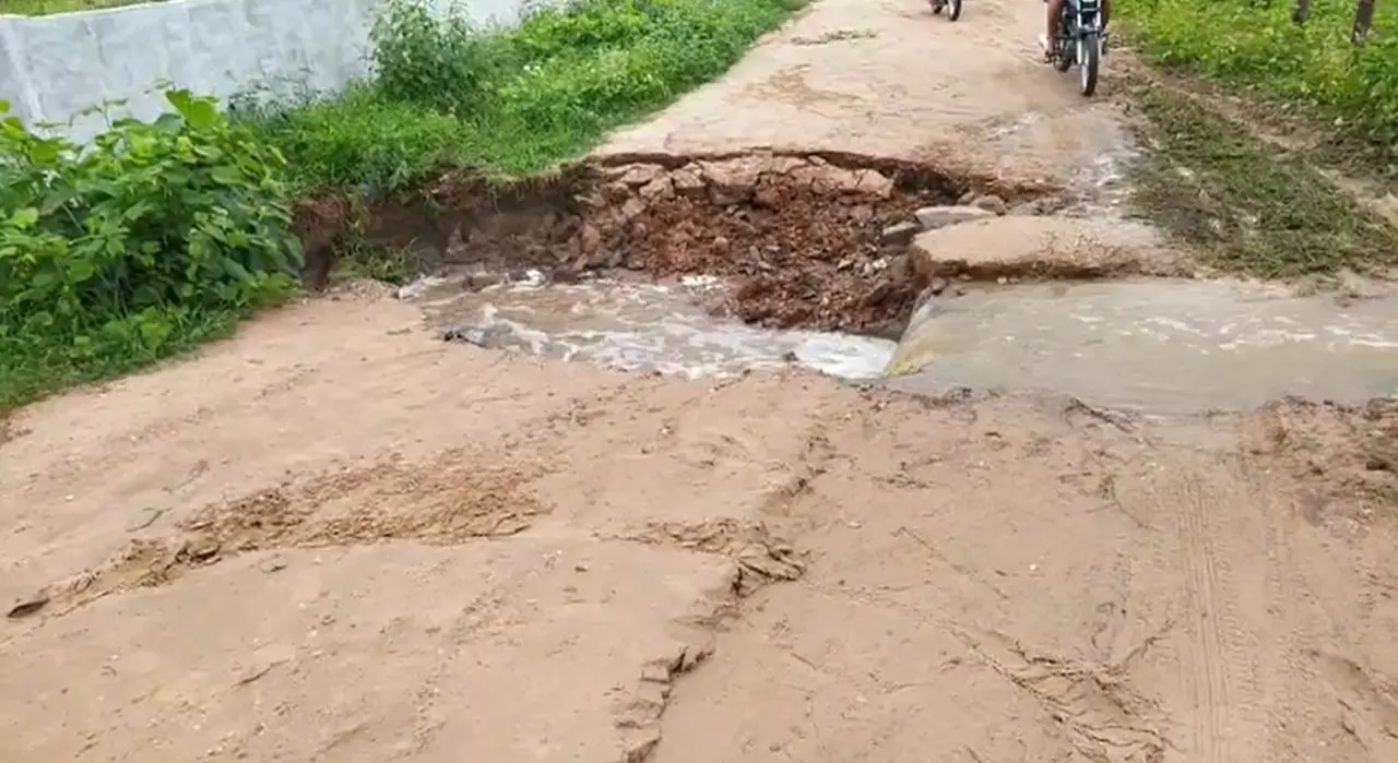 Após chuvas intensas durante a madrugada deste domingo (14), a CE-293, em Milagres, no Cariri, ficou com rachaduras e teve trecho alagado.