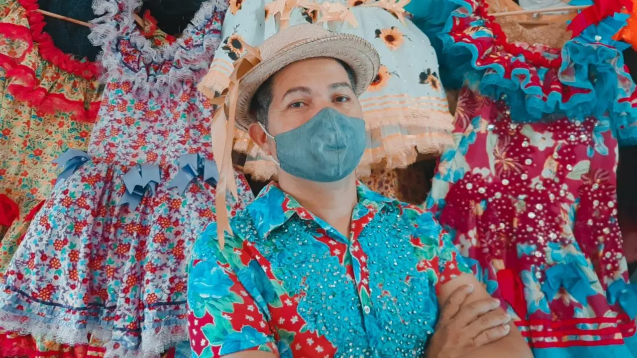 Sem São João presencial e com redução no número de eventos virtuais, o costureiro Antônio Eugênio Silva, que há 27 anos confecciona roupas juninas, lamenta os prejuízos e revela que, neste período, precisou demitir funcionários se reinventar.