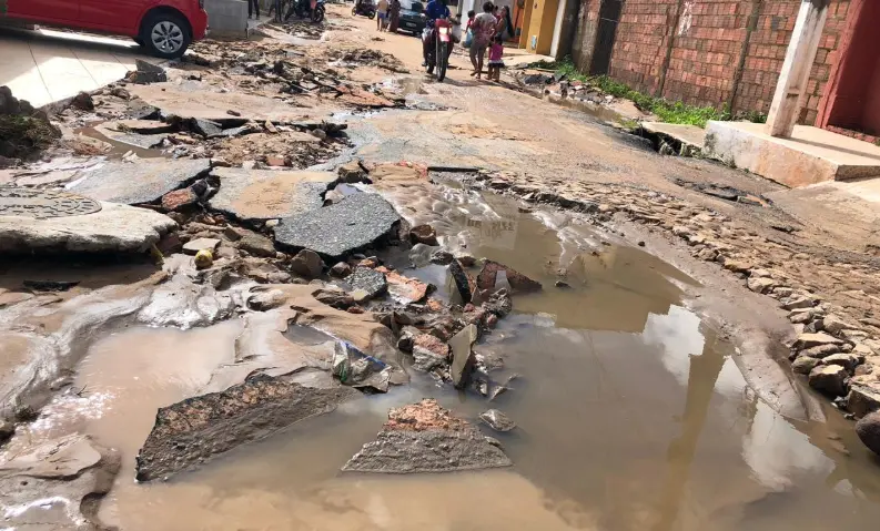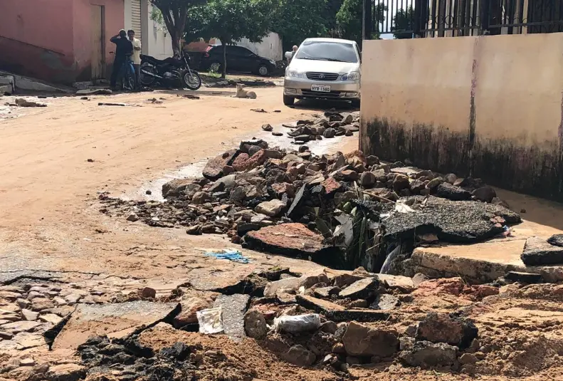 Quando a chuva terminou, foi possível perceber os estragos feitos pela força da água, que derrubou muros, levou partes do asfalto em ruas da cidade e invadiu casas.