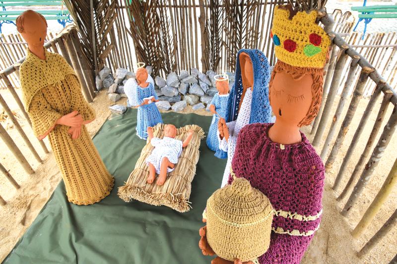 No Natal, o artesanato se faz luz e reveste o presépio de madeira e barro, na praça central de Curral Grande
