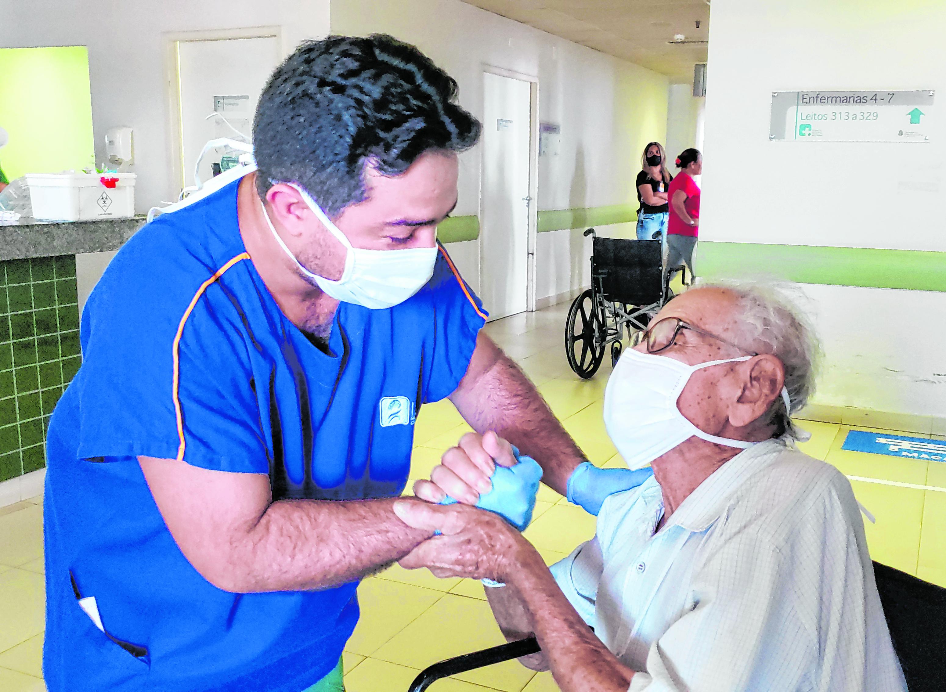 Geraldo conta que sua mãe voltou para o lar mais cedo, depois de 10 dias internada, tendo suporte de médicos e enfermeiros do HRC que realizavam terapias diárias, além da preocupação com seu bem- estar mental. "Nós ficamos superfelizes com o atendimento", destaca o filho.