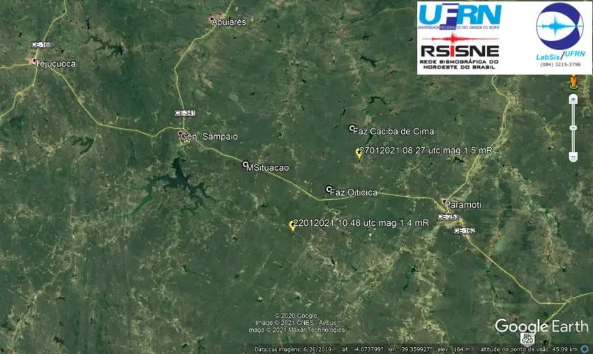 “De acordo com informações de moradores da Fazenda Oiticica, várias pessoas escutaram um estrondo”, contou o chefe do LabSis da UFRN, sismólogo, Eduardo Menezes. “Desde o início do ano, que estamos registrando eventos de pequena intensidade em Paramoti e o último havia sido no dia 10 passado, verificado às 8h19 de magnitude calculada em 1.9 graus”.