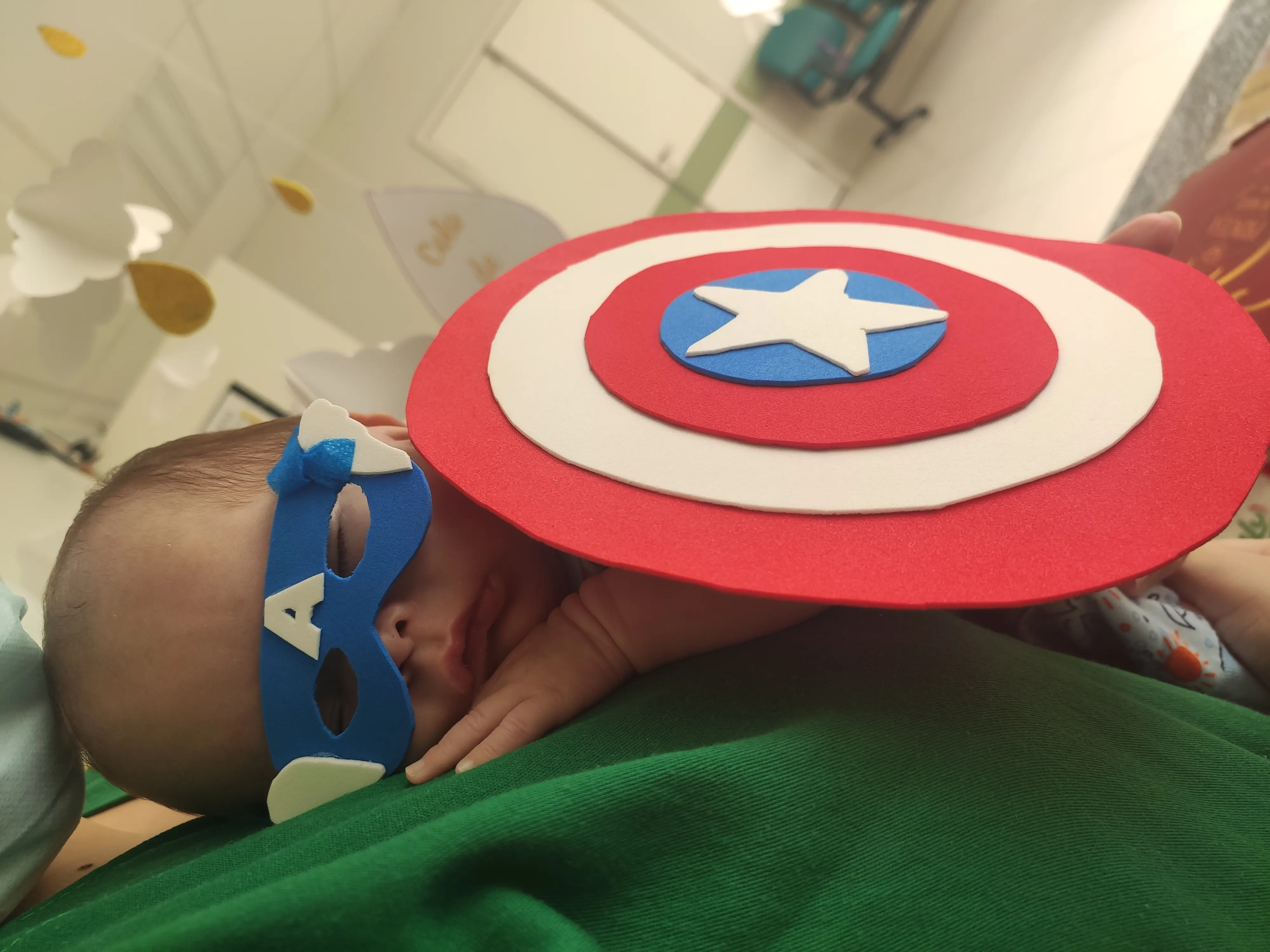 Com todas as complicações vencidas, uma a uma, o pequeno Miguel recebeu, no dia da alta, uma roupa alusiva ao Capitão América, um super-herói da Marvel. Era o símbolo da força do bebê que lutou bravamente pela vida por 107 dias. Hoje, ele completa uma semana em casa, recebendo o carinho afetuoso da família.