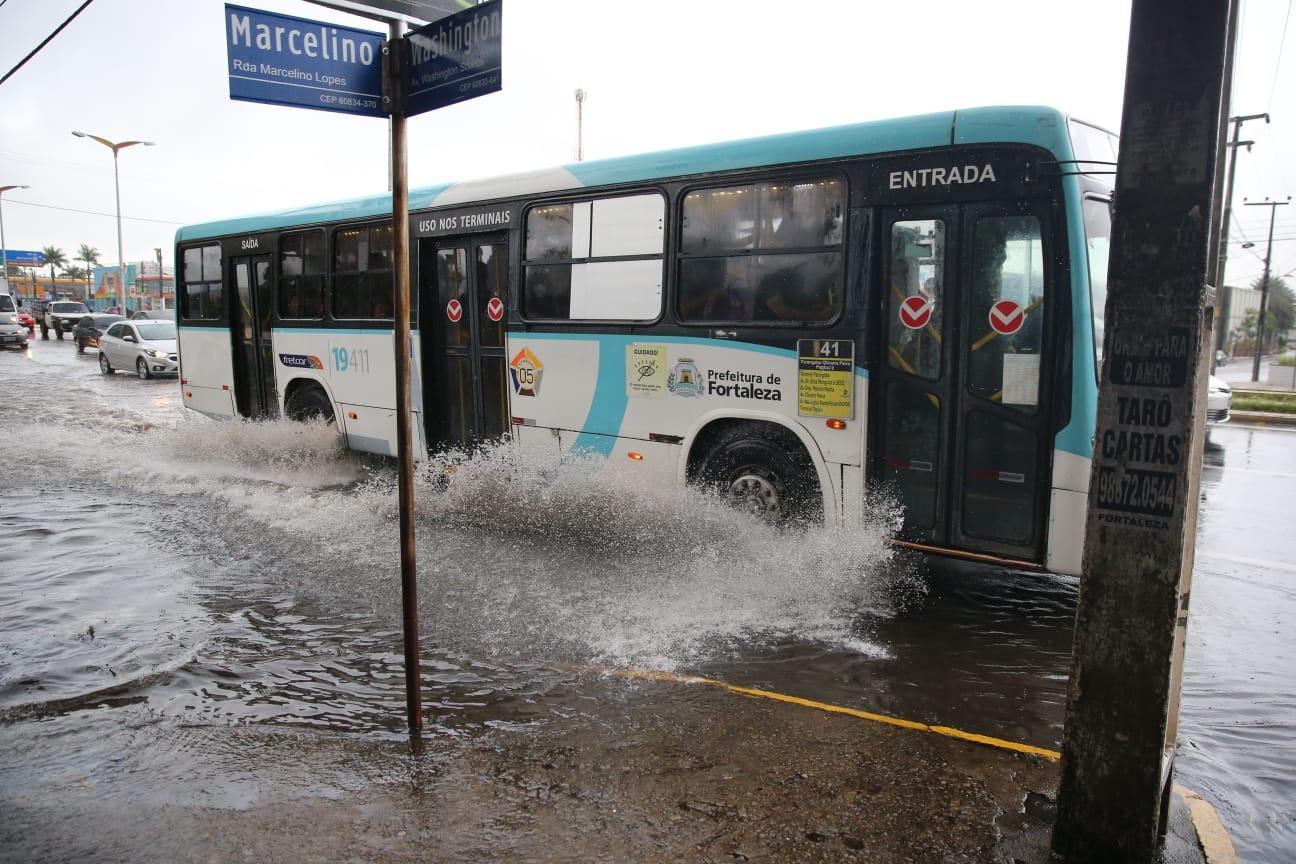 Fortaleza registra alagamentos em manhã chuvosa; cenário é favorável para precipitação durante o dia