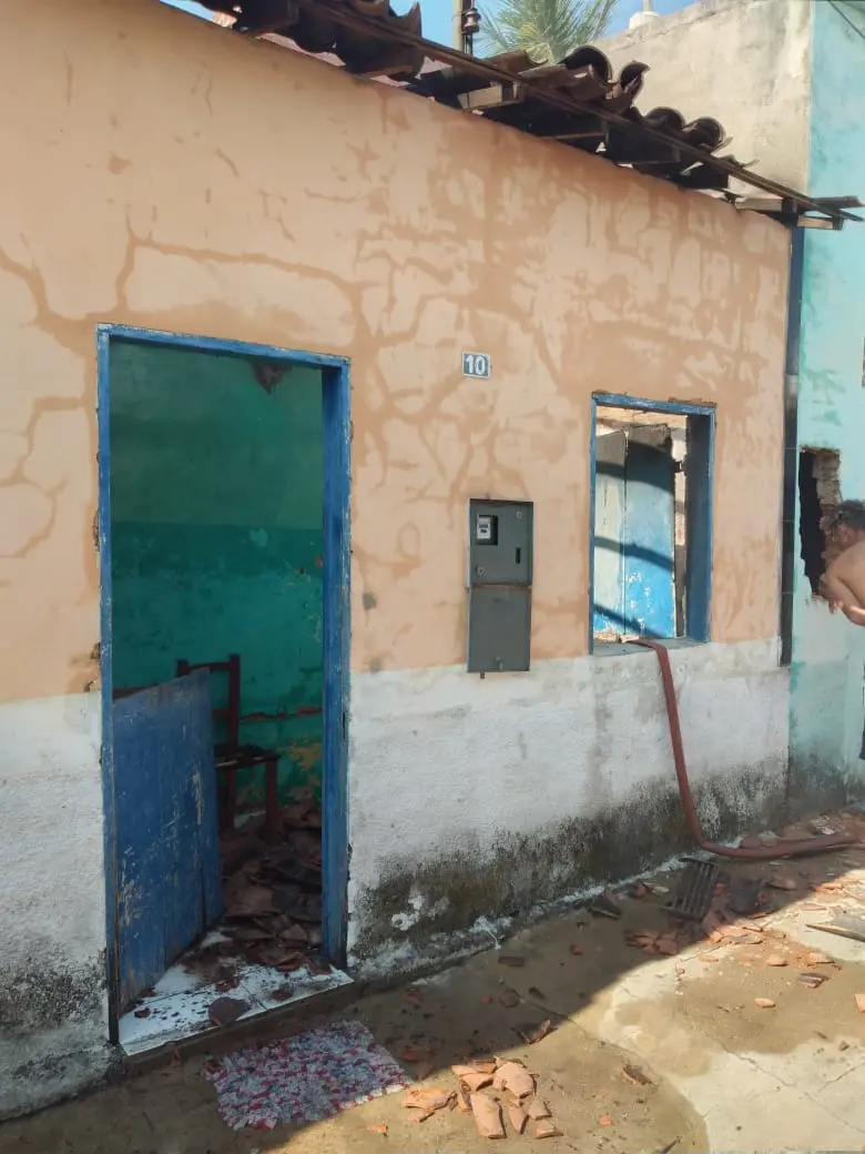 Vizinhos fazem buraco na parede para resgatar morador que teve casa destruída por fogo em Iguatu