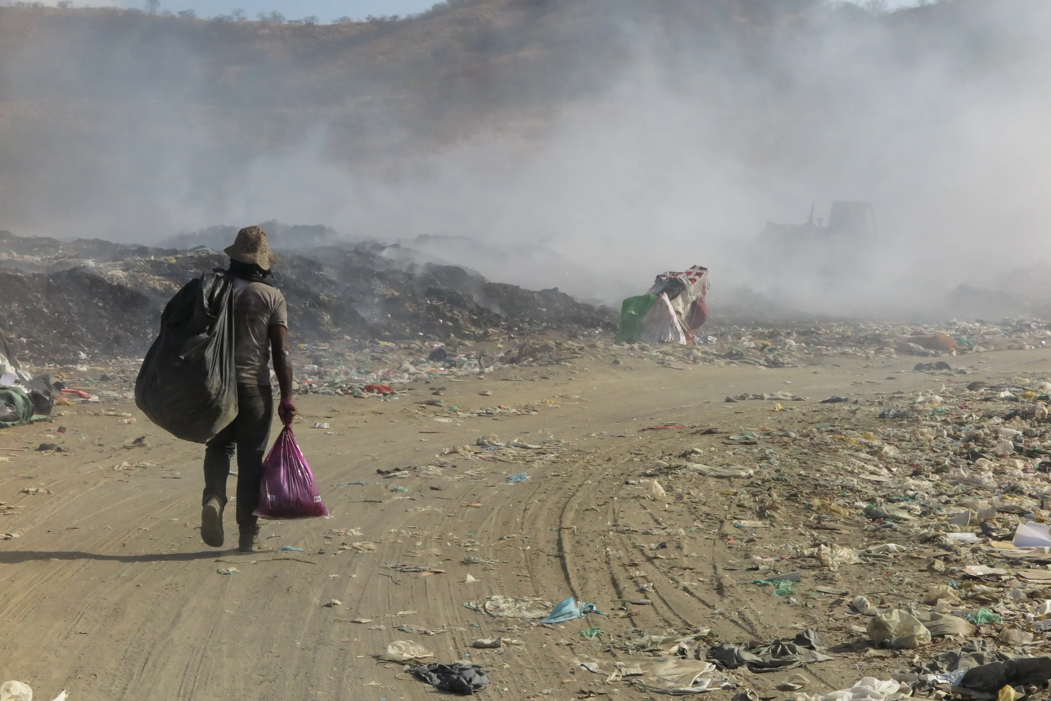 Grande parte do lixo foi queimado e a fumaça impede a visibilidade, inclusive, na rodovia ao lado. O problema é recorrente