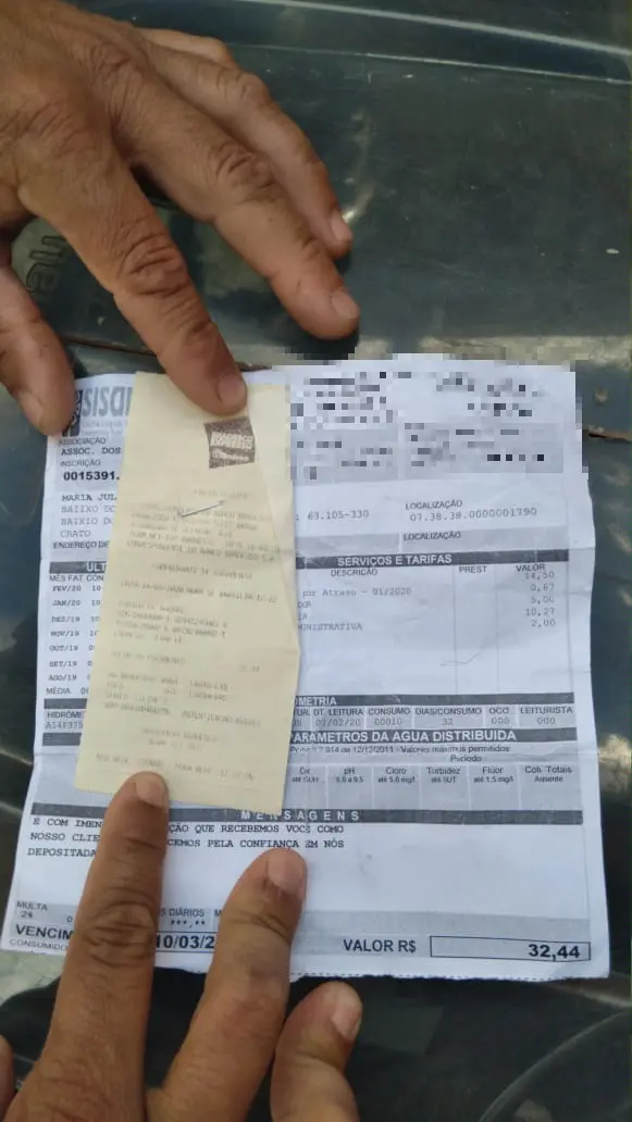 A dívida era por conta do pagamento da energia elétrica, usada para bombear a água que abastece quatro famílias da zona rural de Crato. Moradores não sabem o paradeiro do dinheiro