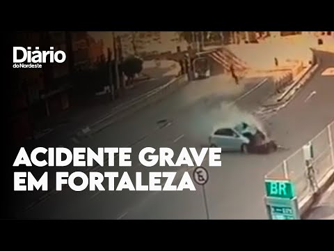 Imagens de câmera de segurança que circulam nas redes sociais capturaram o momento do acidente. É possível ver as duas pessoas que estavam na moto sendo atingidas frontalmente pelo carro e arremessadas no ar antes de caírem na via.