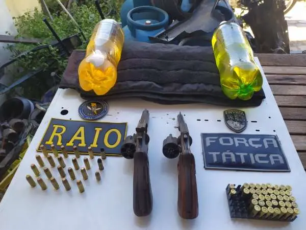 Os militares também apreenderam munições, uma capa de colete balístico e duas garrafas contendo gasolina. Os suspeitos foram direcionados à Delegacia Regional de Sobral
