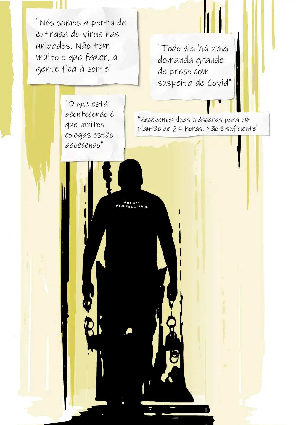 Segundo outro policial penal, "os colegas que fizeram escolta destes dois que morreram ainda nem fizeram o exame da Covid. O teste só é feito quando a pessoa está muito debilitada". Perto dos presos, os agentes ouvem dos detentos perguntas como "e lá fora? A situação piorou"? Eles percebem que a interrupção do recebimento de visitas e o medo da doença também aterroriza os internos. "Agora que não tem mais comunicação externa, eles querem saber se os familiares ficaram doentes e se ainda estão vivos".