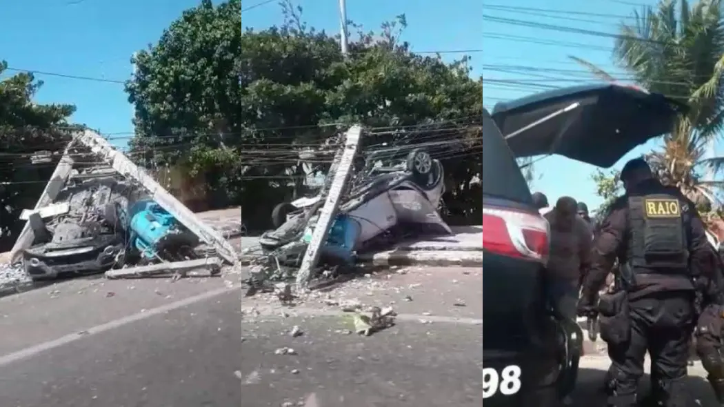 Apesar da ordem de parada, os suspeitos prosseguiram com a fuga. No entanto, o motorista perdeu o controle, fazendo o carro capotar e se chocar contra um poste.