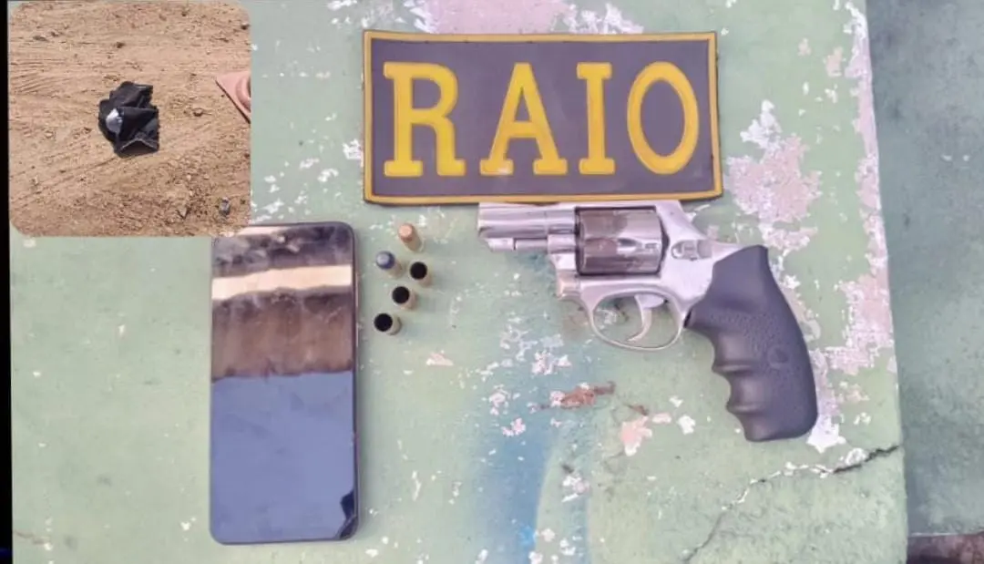 Durante a perseguição, houve troca de tiros. Um dos suspeitos foi alcançado e preso. Com ele, os agentes apreenderam um revólver calibre .38, com três munições deflagradas e duas intactas.
