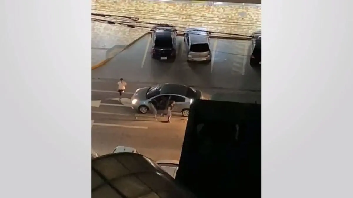 A motorista estava trafegando na via quando um dos homens entra pela janela. Ela, então, abre a porta e foge gritando por socorro, enquanto um comparsa corre e entra no automóvel pela porta do condutor, deixada aberta.