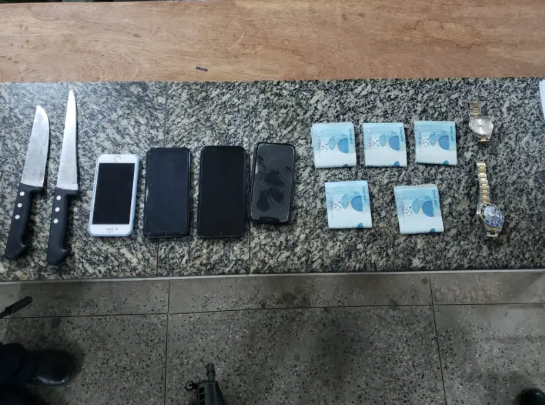 Com o bandido, a Polícia Militar encontrou aparelhos celulares, dois relógios, além de R$ 5 mil em espécie.