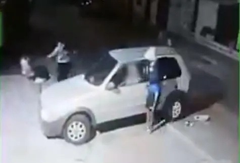 As imagens que registraram o crime mostram os dois suspeitos chegando próximo ao veículo, que estava parado, e anunciando assalto. A passageira já havia descido do carro quando os assaltantes obrigam o motorista a sair também. Os suspeitos entram no veículo e fogem.