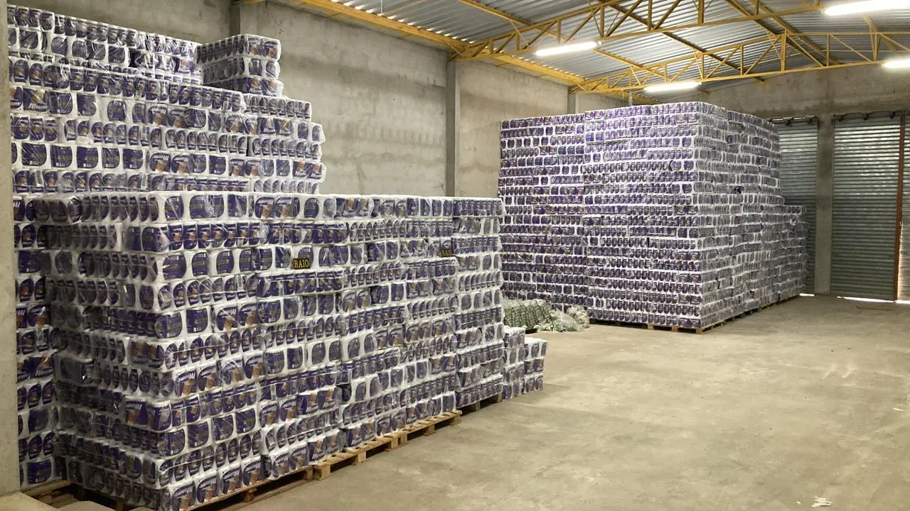 Cerca de 2,4 mil fardos do produto estavam armazenados num galpão. Locatário foi autuado pelo crime de receptação
