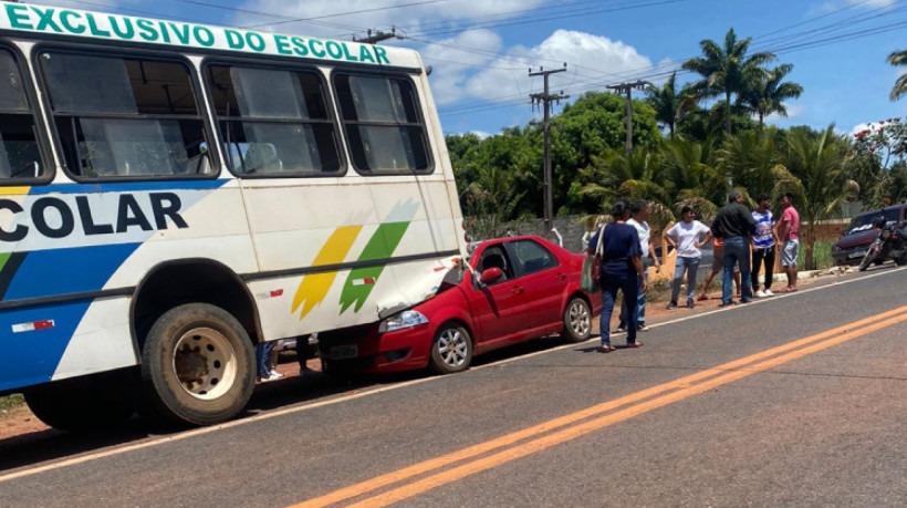 O ônibus estava parado em uma via, quando o veículo menor teria perdido o controle e causado a colisão