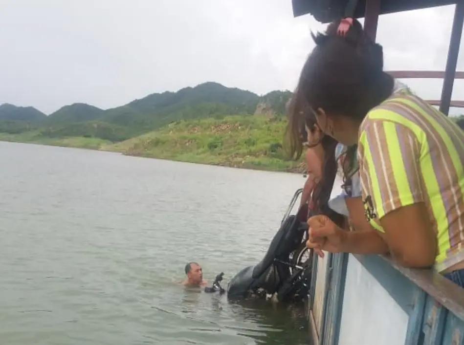 A motocicleta foi encontrada a cerca 18 metros de profundidade durante as operações de busca por um barco não-tripulado do Departamento Nacional de Obras contras as Secas (Dnocs), que afundou após ficar à deriva no sábado (2).