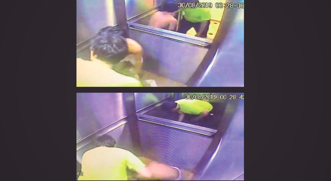 As imagens mostram quando o filho dela, de 14 anos, de corpo franzino, pega a mãe pelos braços e Aldemir a segura pelas pernas. Em determinado momento, o advogado carrega a mulher apenas por uma perna para colocá-la no elevador do prédio.