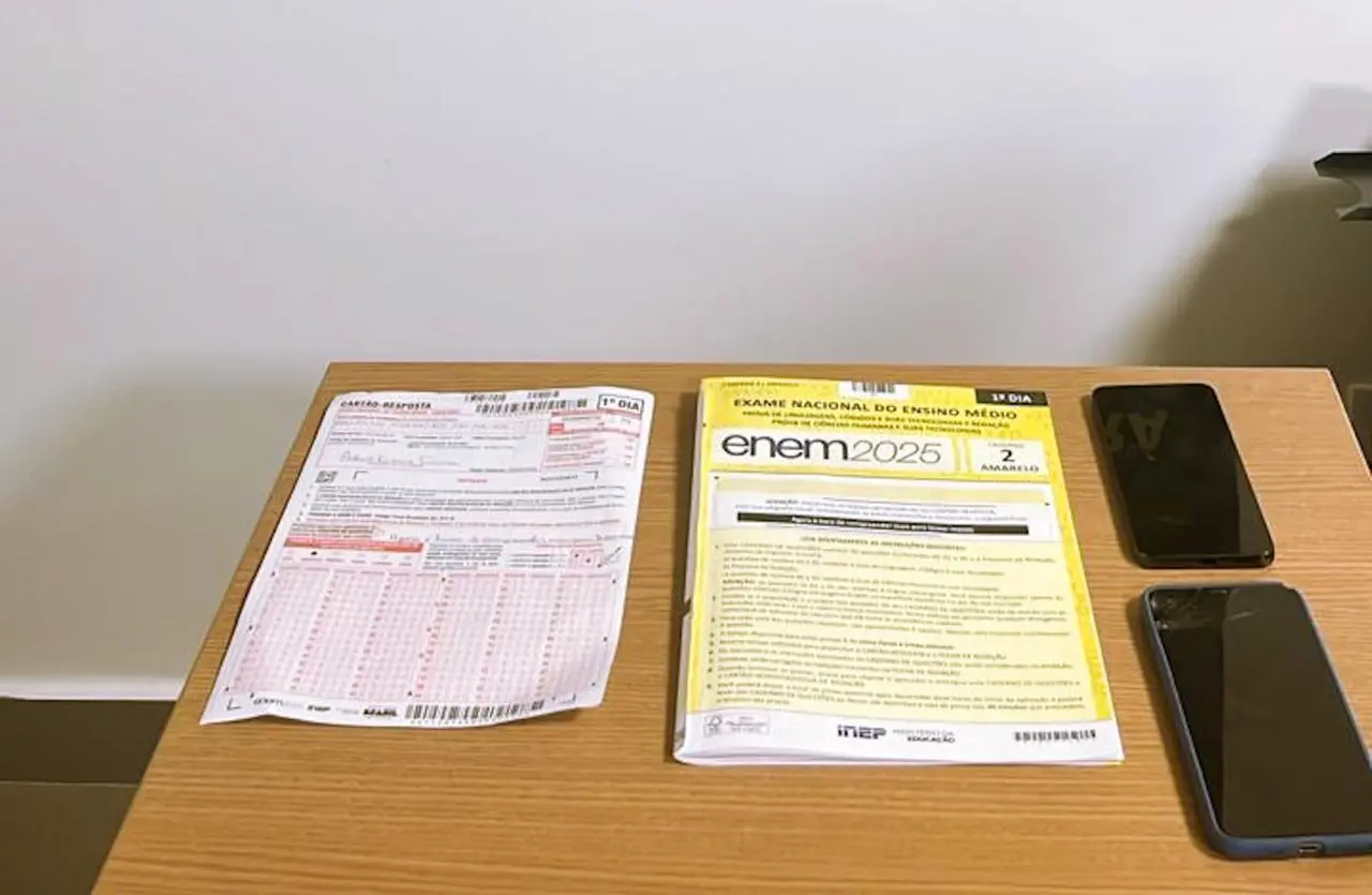 Próximo ao término da prova, fiscais identificaram que ele utilizava um aparelho celular não declarado, contrariando as regras do exame. Ainda foi encontrado um rascunho com trechos digitalizados que poderiam ser utilizados na redação.