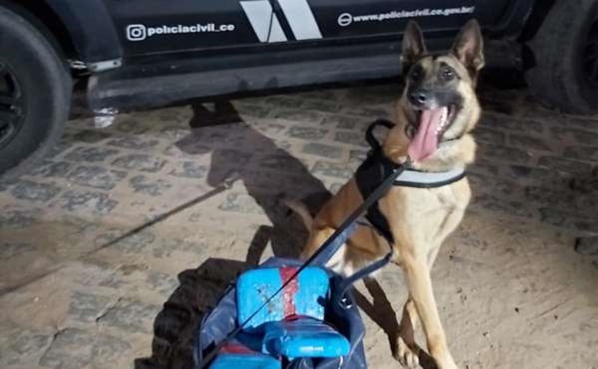 Cão farejador auxilia Polícia Civil a localizar tabletes de crack em bagagem de passageira no Crato