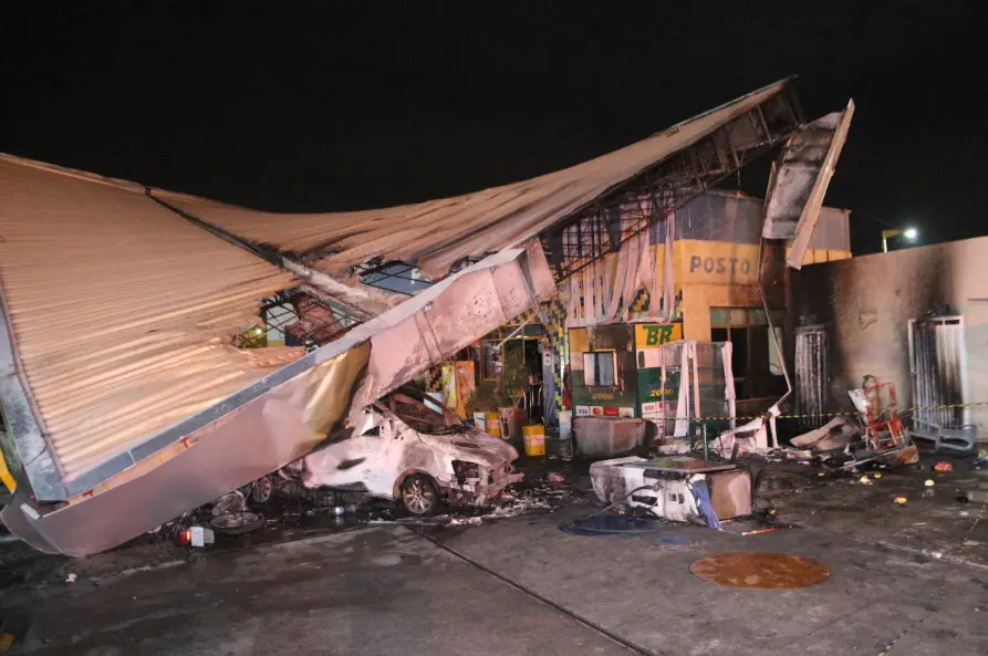 Um automóvel invadiu um posto de combustíveis e provocou um incêndio no local. O caso foi registrado na cidade de Cedro, Região Centro-Sul do Ceará, na noite deste domingo (5).