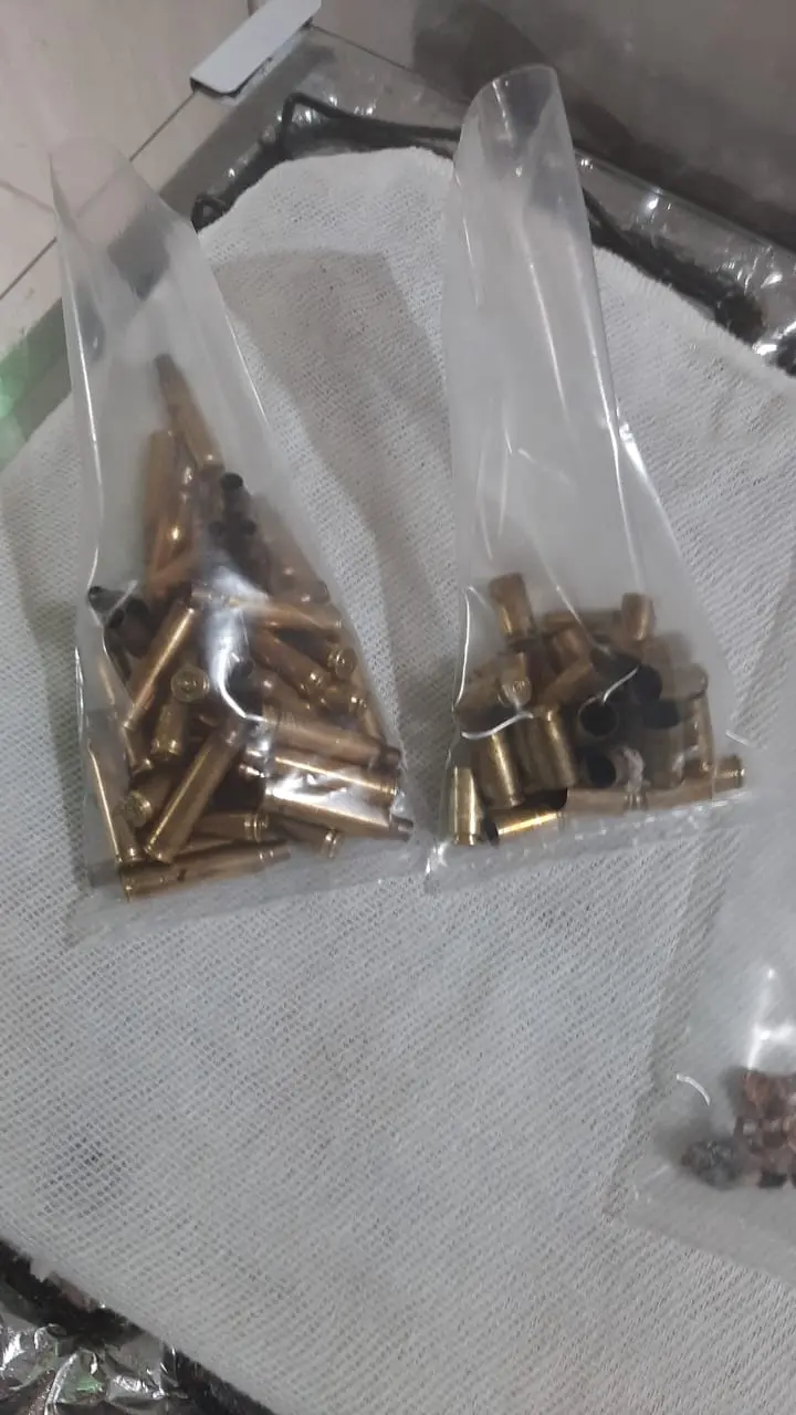 Dezenas de cápsulas de munições foram encontradas no local. Polícia procura por criminosos