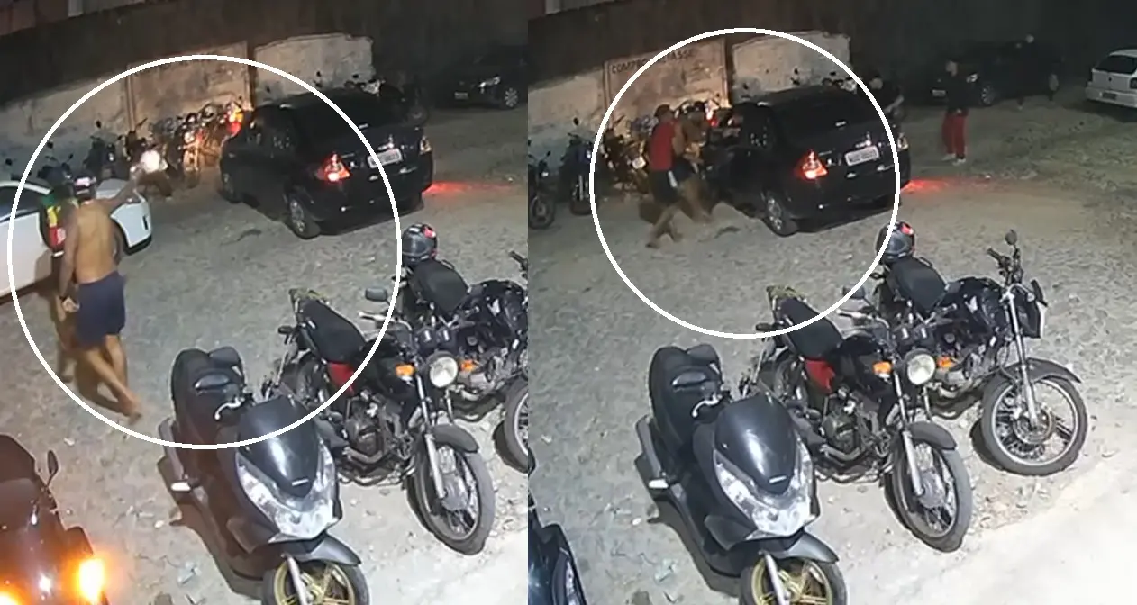 O homem estava dirigindo o carro com a mulher no banco do passageiro. Conforme observado em imagens, ao passar pelo portão do condomínio, o veículo das vítimas foi interceptado por outro automóvel, de onde desceu um suspeito com arma em punho apontando para o casal.