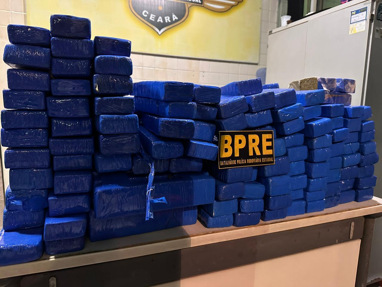 De acordo com a Polícia Militar do Ceará (PMCE), foram 233 tabletes da droga apreendidos. O entorpecente estava no banco e no porta-malas do veículo, que seguia em direção a Fortaleza.