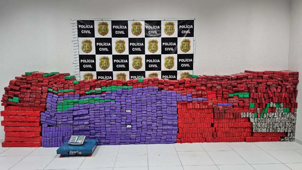 Ao entrarem no imóvel, os investigadores localizaram sacos de farinha utilizados para transportar a droga e isopores com diversos tabletes. Ao todo, foram apreendidos 1.248 kg de maconha.