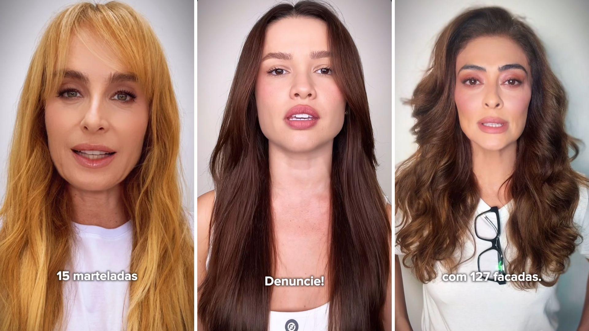 As artistas ainda aparecem explicando as diferenças entre a violência psicológica, violência patrimonial, violência moral e violência sexual.