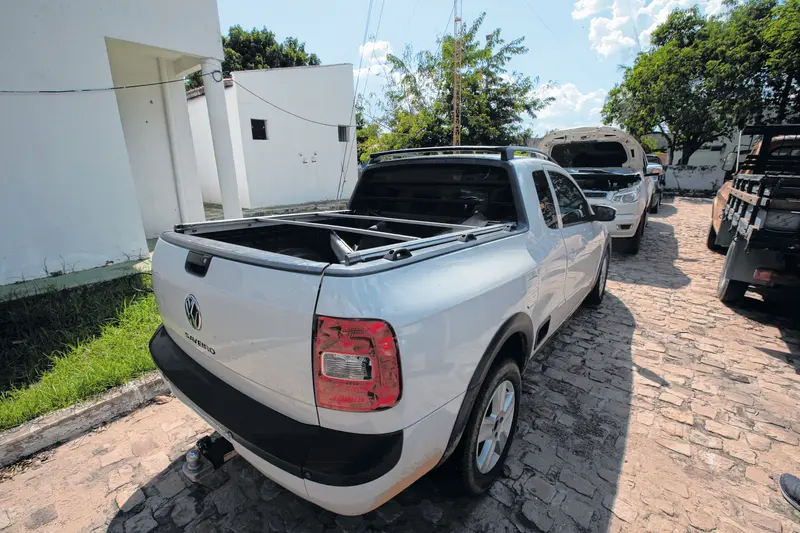 Os PMs fizeram uma vistoria na área e recolheram munições calibre 12, chapa de ferro e grampos utilizados para furar pneus, dentro da Saveiro, que estava estacionada no bar; a Saveiro e a S-10 também foram apreendidas.