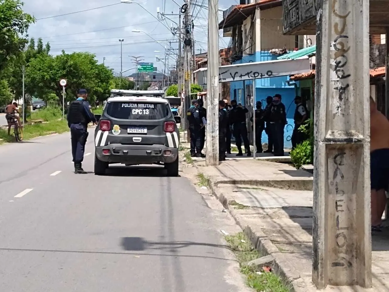 A Polícia Militar está na região fazendo buscas por suspeitos e por armas de fogo