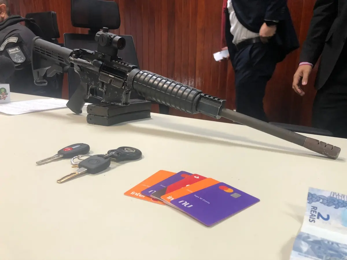 Com a dupla, foram apreendidos um fuzil calibre 5.56, duas pistolas calibres 380, mais de 100 munições de calibres variados e dos veículos roubados, com sinais identificadores adulterados.