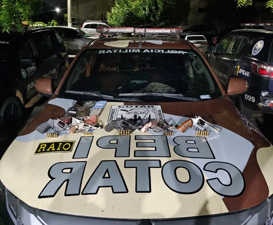 Com o grupo, foram encontradas cinco revólveres, um artefato explosivo, além de munições deflagradas e intactas. Uma motocicleta também foi apreendida.