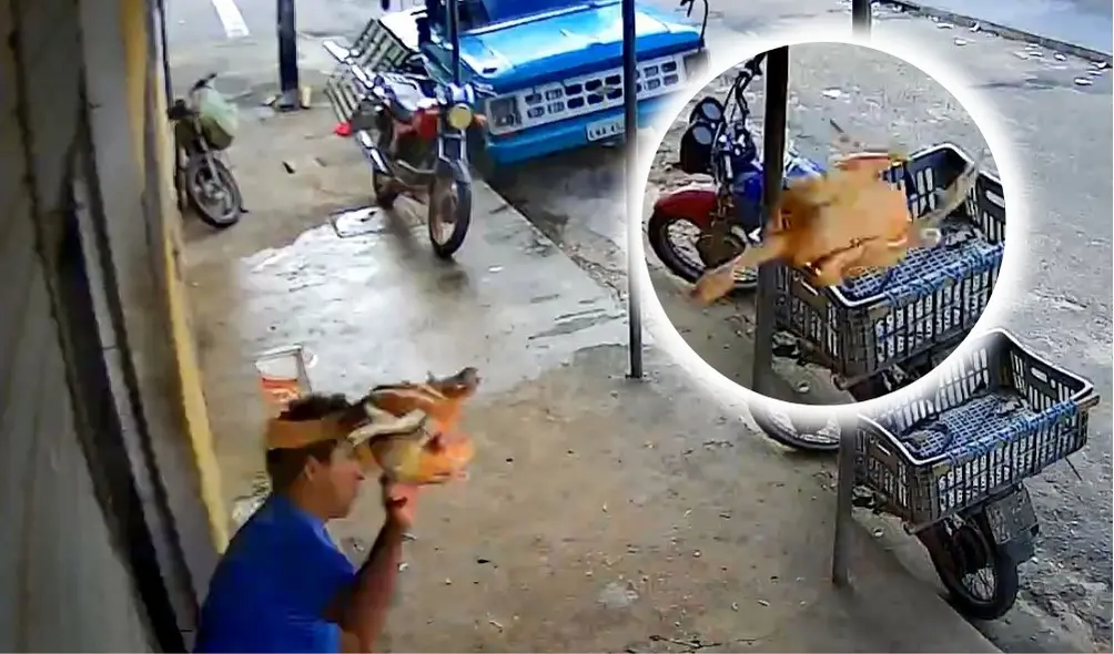 Comerciante joga frango para 'expulsar' assaltante durante roubo a mercado em Fortaleza; veja vídeo