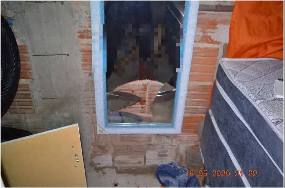 O pedaço do espelho arrancado da parede não foi encontrado na cena do crime.
