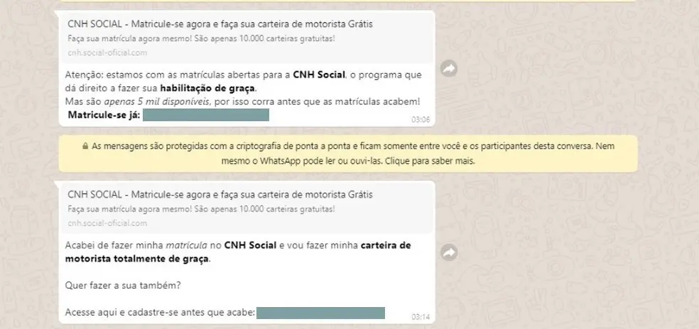 Mensagens estão sendo enviadas pelas redes sociais prometendo habilitação de graça. O intuito é conseguir dados sigilosos das pessoas