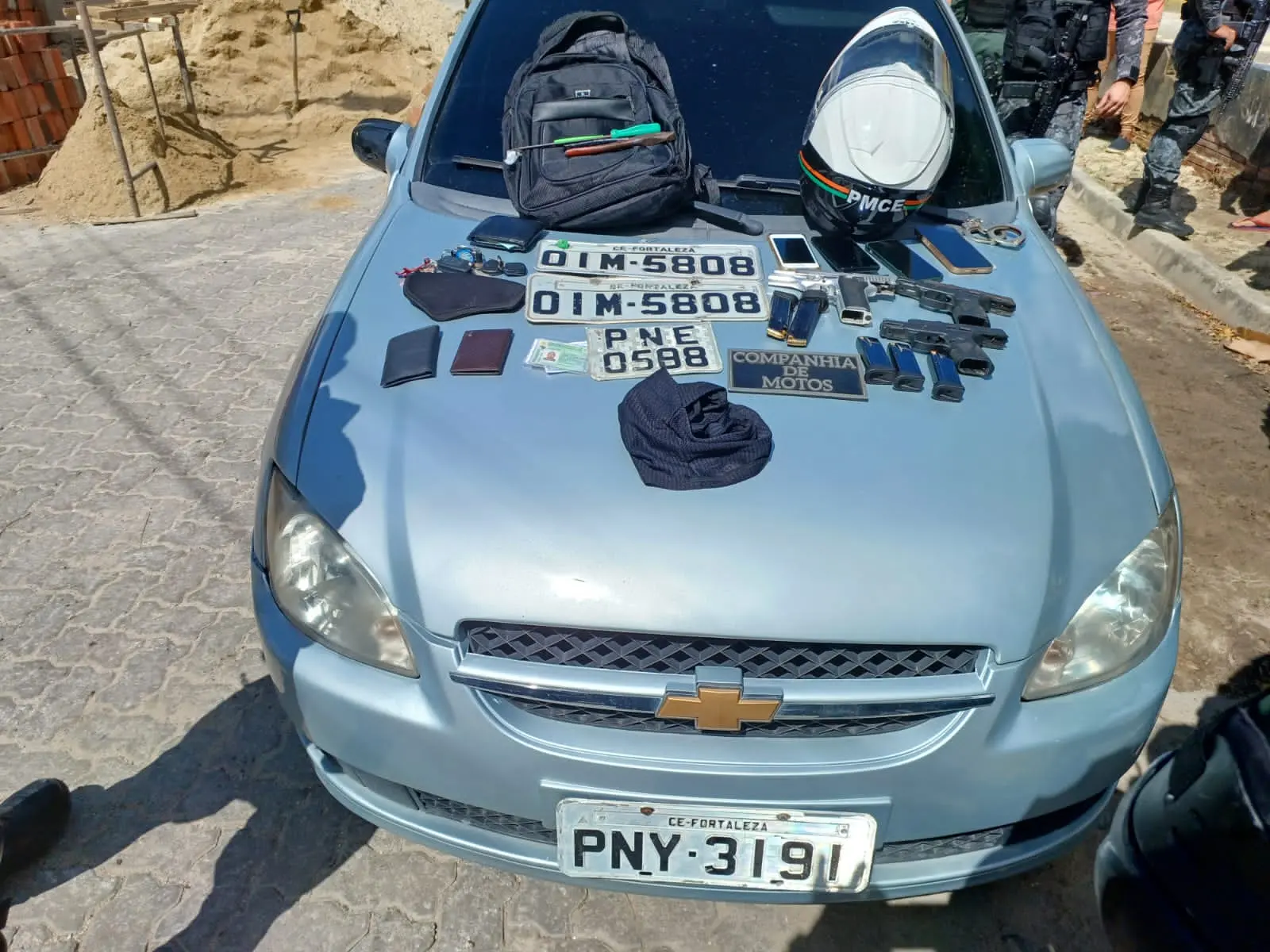 A PMCE foi acionada por populares. Uma composição da Companhia de Motos realizou a abordagem ao automóvel, que utilizava placas "frias", no bairro Conjunto Esperança, em Fortaleza.