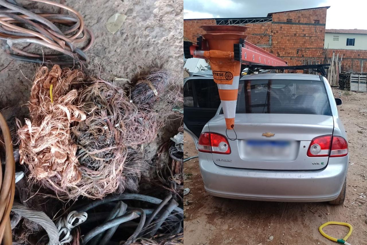 O homem foi identificado como Tiago dos Santos, de 33 anos. Conforme a Polícia Civil do Ceará (PC-CE), com ele foram apreendidos ainda 10 kg de cabos, uma escada, dois cones de trânsito e uma farda de empresa de internet.