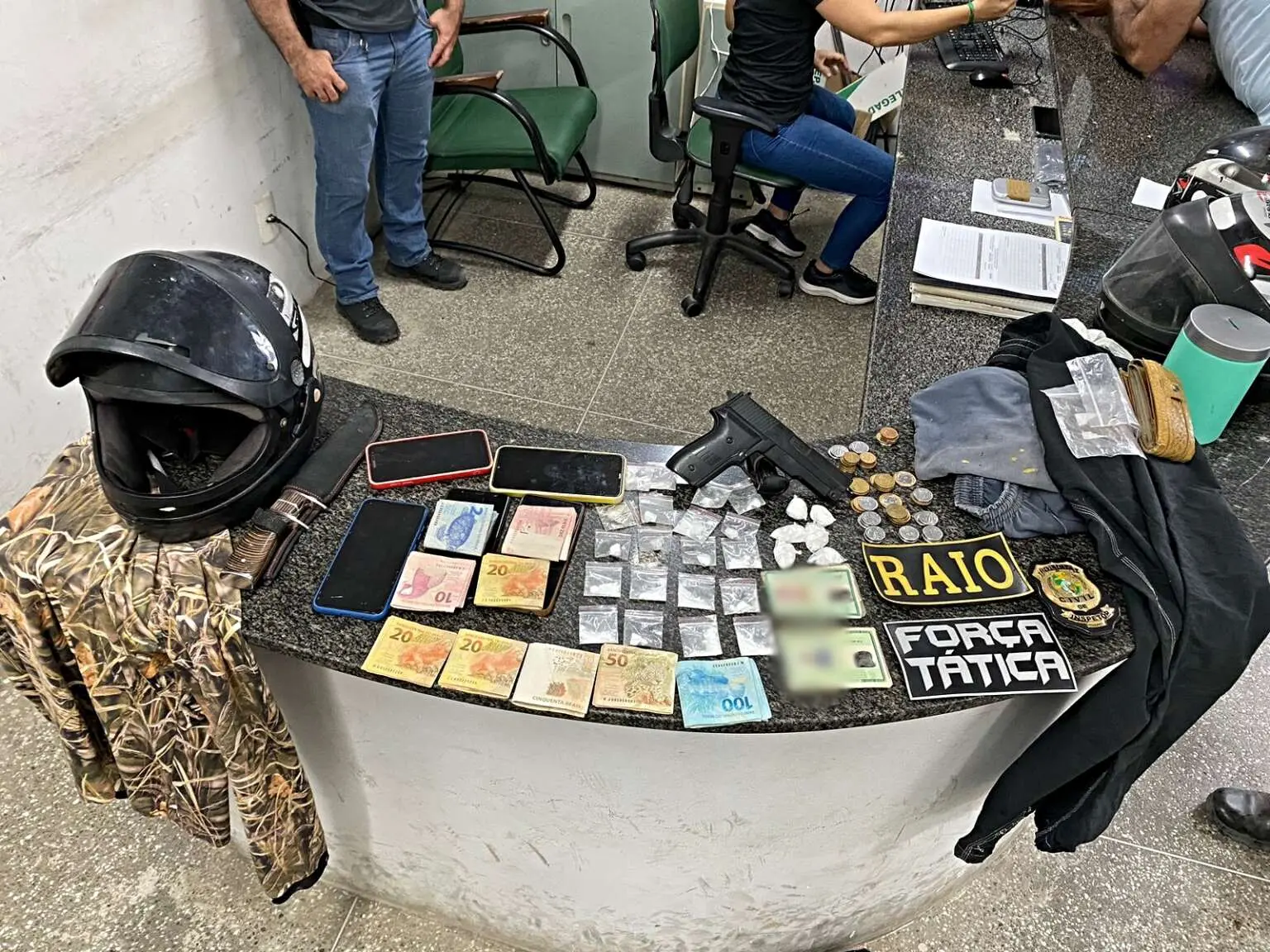 Na residência de Adriano, os agentes de segurança encontraram droga, R$ 2 mil em espécie e roupas que foram identificadas por testemunhas do homicídio como as vestimentas utilizadas pelos criminosos. De acordo com a Polícia, o suspeito é irmão de um matador da facção criminosa Guardiões do Estado (GDE).