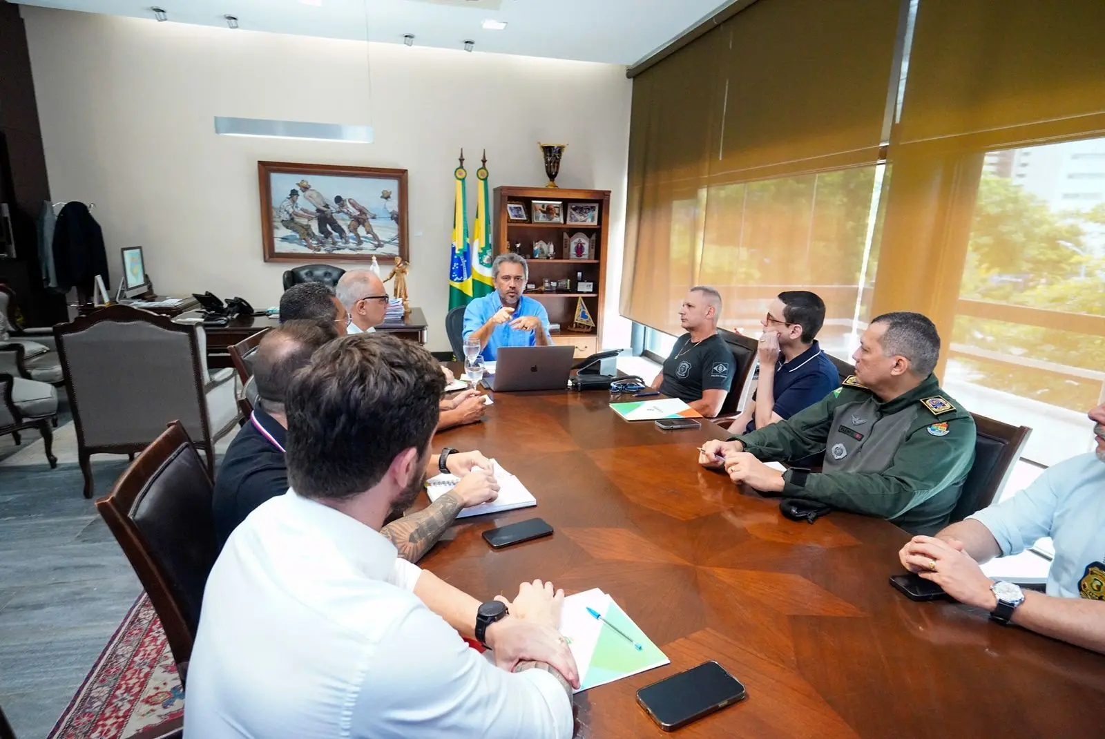 Elmano de Freitas participa de uma reunião com secretários de Governo para definir ações para a Segurança Pública. Na live neste domingo, ele ressaltou que as novas medidas de fortalecimento das forças de segurança serão anunciadas nesta segunda-feira (24).