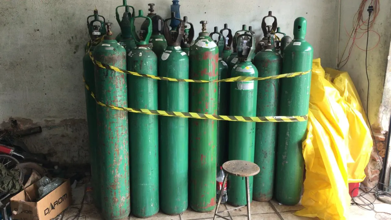 No local, a Polícia contou 22 cilindros vazios que armazenavam 204 metros cúbicos de oxigênio, além de outros nove cilindros cheios.