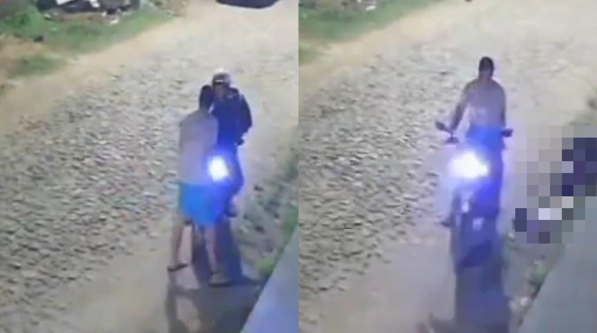 O criminoso então toma posse da moto e sai sem interferência do local.