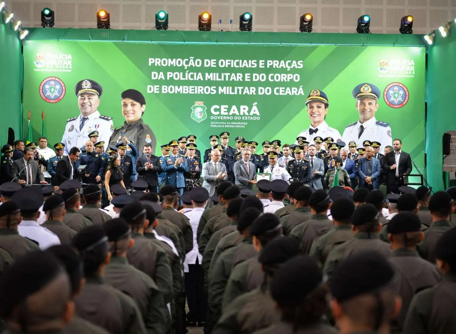 O Governo do Estado promoveu, nesta segunda-feira (23), 1.903 bombeiros e policiais militares, em uma solenidade no Centro de Eventos do Ceará, em Fortaleza. Ainda nesta semana, 556 militares serão promovidos no Interior, o que irá totalizar a ascensão de 2.459 agentes de segurança.