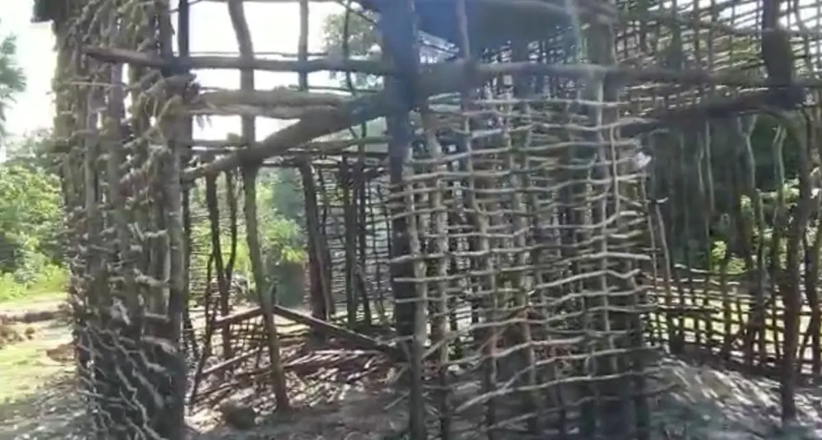 Em vídeos que circulam nas redes sociais é possível ver o imóvel de taipa queimado